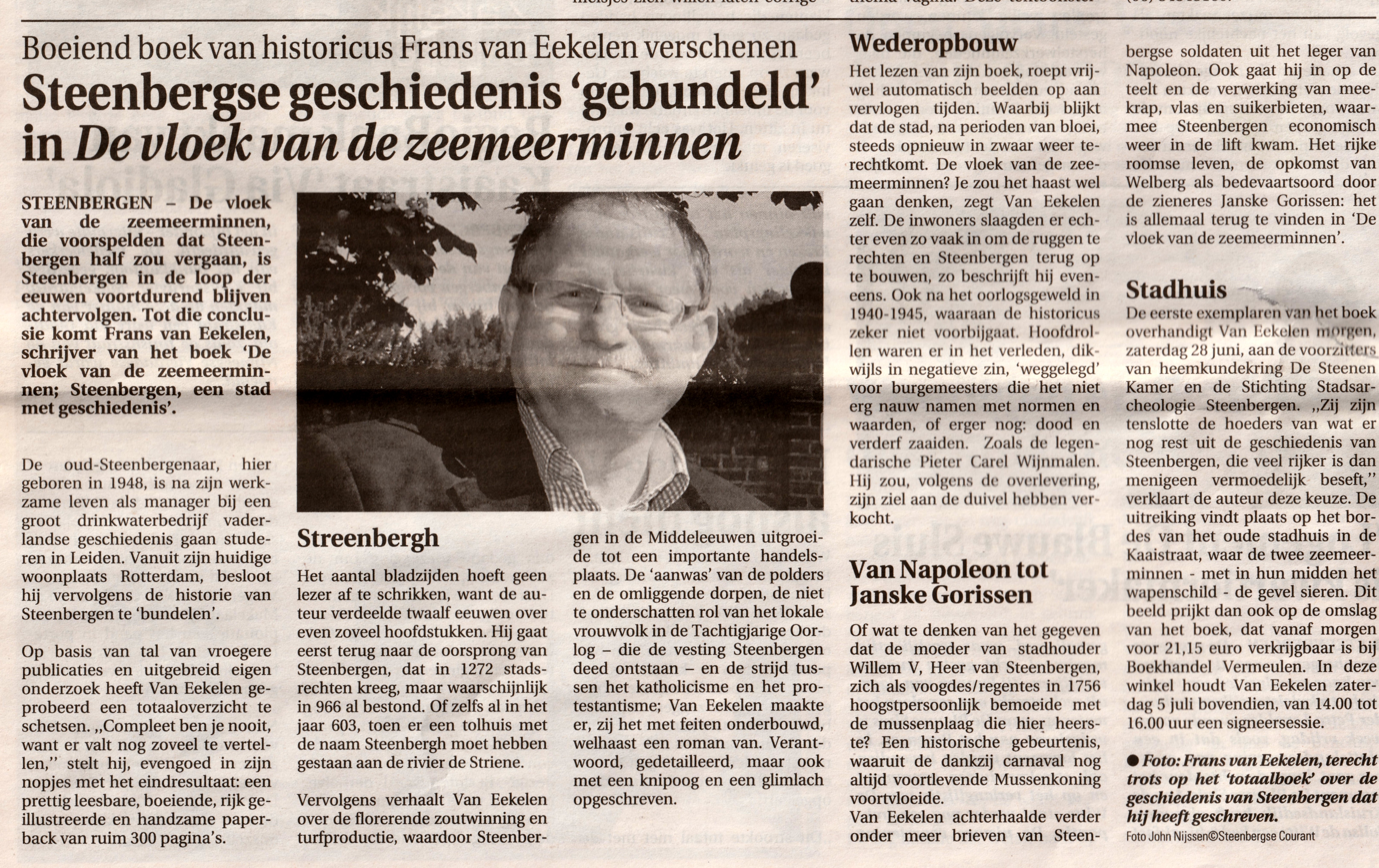 Op 28 juni 2014 werd het officieel uitgereikt aan de voorzitters van de Heemkunde kring 'De SteenenKamer' en de Stichting Stadsarcheologie Steenbergen.